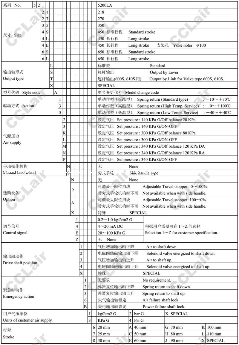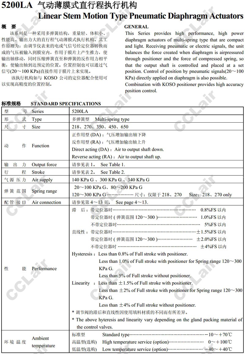 詳細信息 5221LA,5227LA,5235LA,524SLA,524LLA,526SLA,526LLA,氣動(dòng)薄膜式直行程執行機構