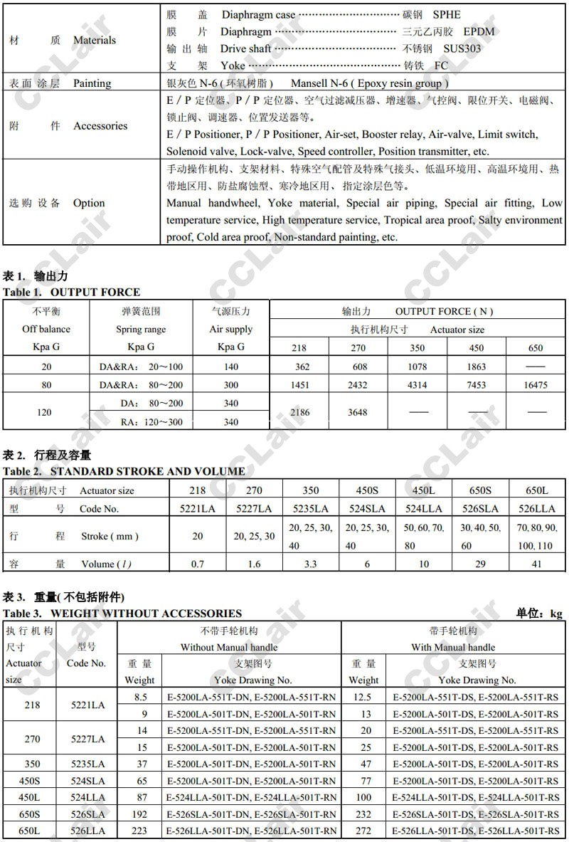 5221LA,5227LA,5235LA,524SLA,524LLA,526SLA,526LLA,氣動(dòng)薄膜式直行程執行機構