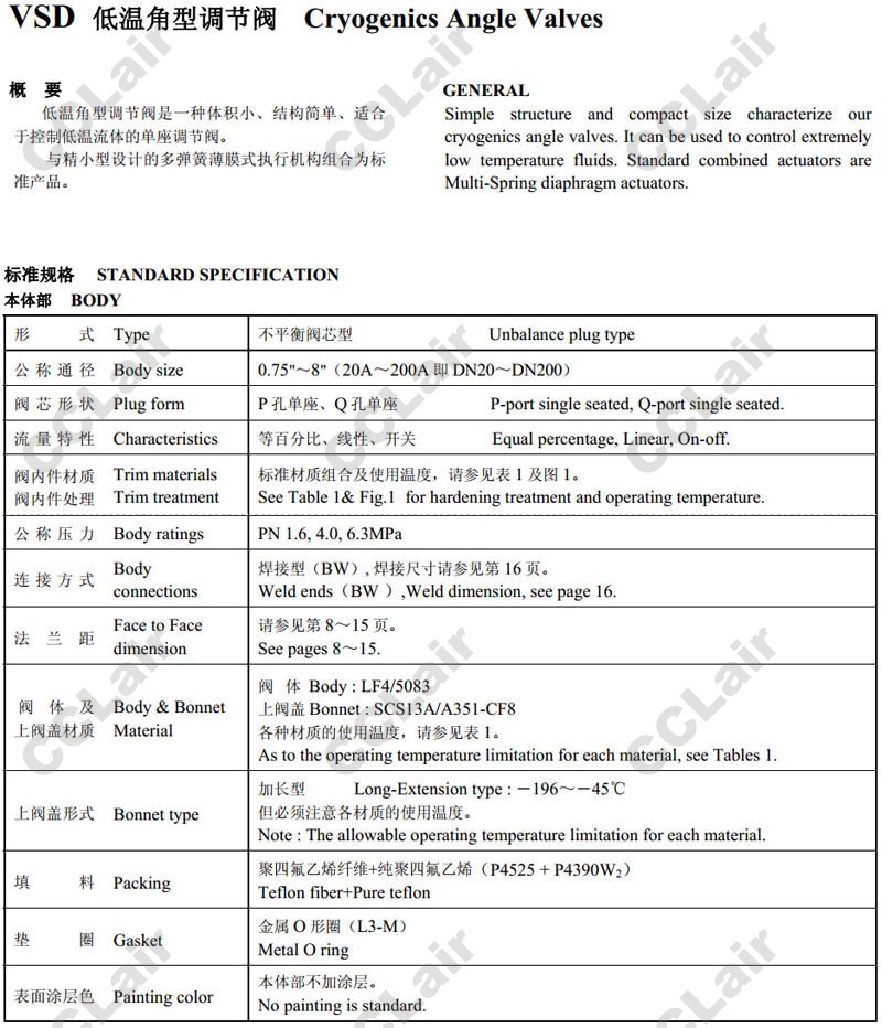 詳細信息 VSD-5200LA,低溫角型調節閥