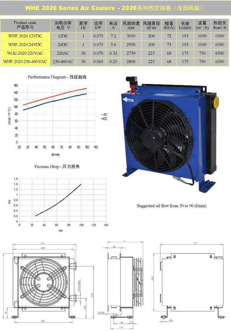 詳細信息 WHF202012VDC,WHF202024VDC,WHF2020220VDC,WHF2020230-400VDC,熱交換器