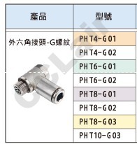 PHT4-G01,PHT4-G02,PHT6-G01,PHT6-G02,PHT8-G01,PHT8-G02,PHT8-G03,PHT10-G03,國鷹KUOIN外六角接頭