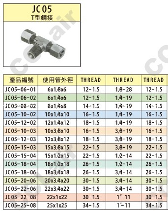 JC05-06,JC05-08,JC05-10,JC05-12,JC05-15,JC05-18,JC05-20,JC05-22,JC05-25,國鷹KUOIN鋼管接頭