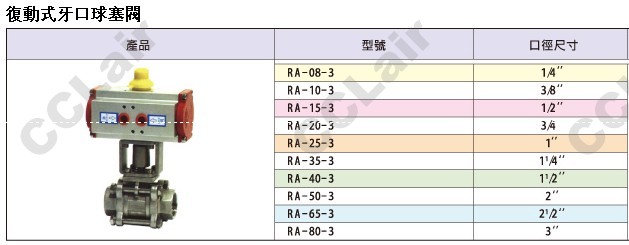 RA-08-3,RA-10-3,RA-15-3,RA-20-3,RA-25-3,RA-35-3,RA-40-3,RA-50-3,RA-65-3,RA-80-3,國鷹KUOIN復動(dòng)式牙口球塞閥