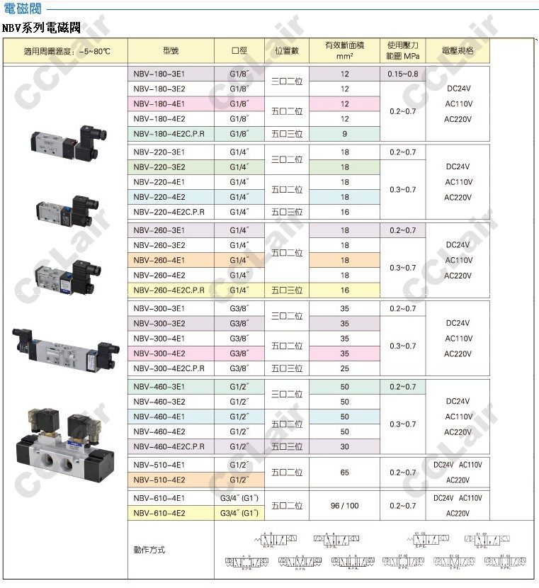 NBV-180,NBV-220,NBV-260,NBV-300,NBV-460,NBV-510,NBV-460-4E2R,NBV-220-3E1,國鷹KUOIN電磁閥