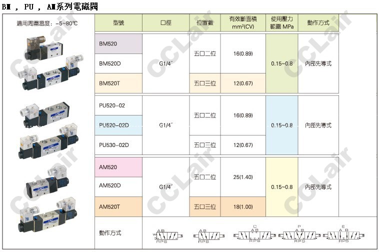 BM520,BM520D,BM520T,PU520-02,PU520-02D,PU530-02D,AM520,AM520D,AM520T,國鷹KUOIN電磁閥