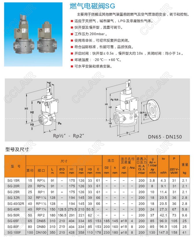 詳細信息 SG15R,SG20R,SG25R,SG32R,SG40/32R,SG40R,SG50R,SG65F,SG80F,SG100F,燃氣電磁閥