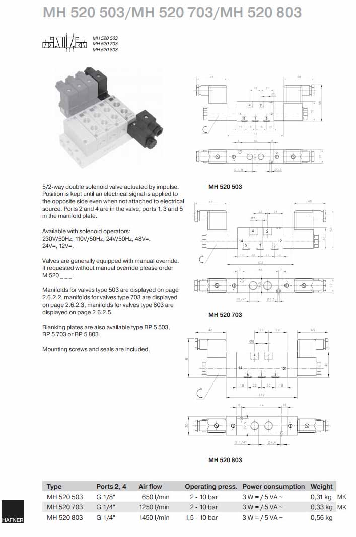 MH520503,MH520703,MH520803,Hafner電磁閥 詳細信息 MH520503,MH520703,MH520803,Hafner電磁閥