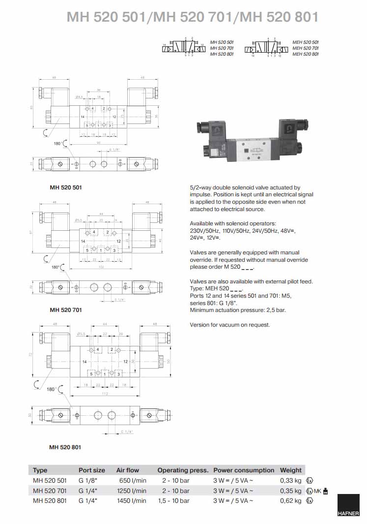 MH520501,MH520701,MH520801,Hafner電磁閥 詳細信息 MH520501,MH520701,MH520801,Hafner電磁閥