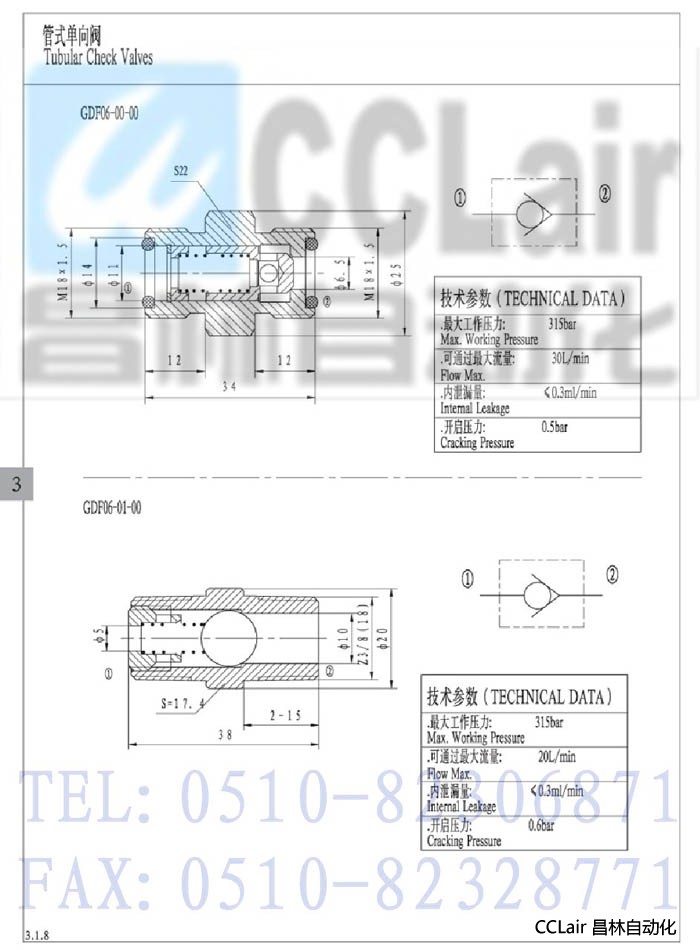 詳細信息 GDF06-00-00,管式單向閥