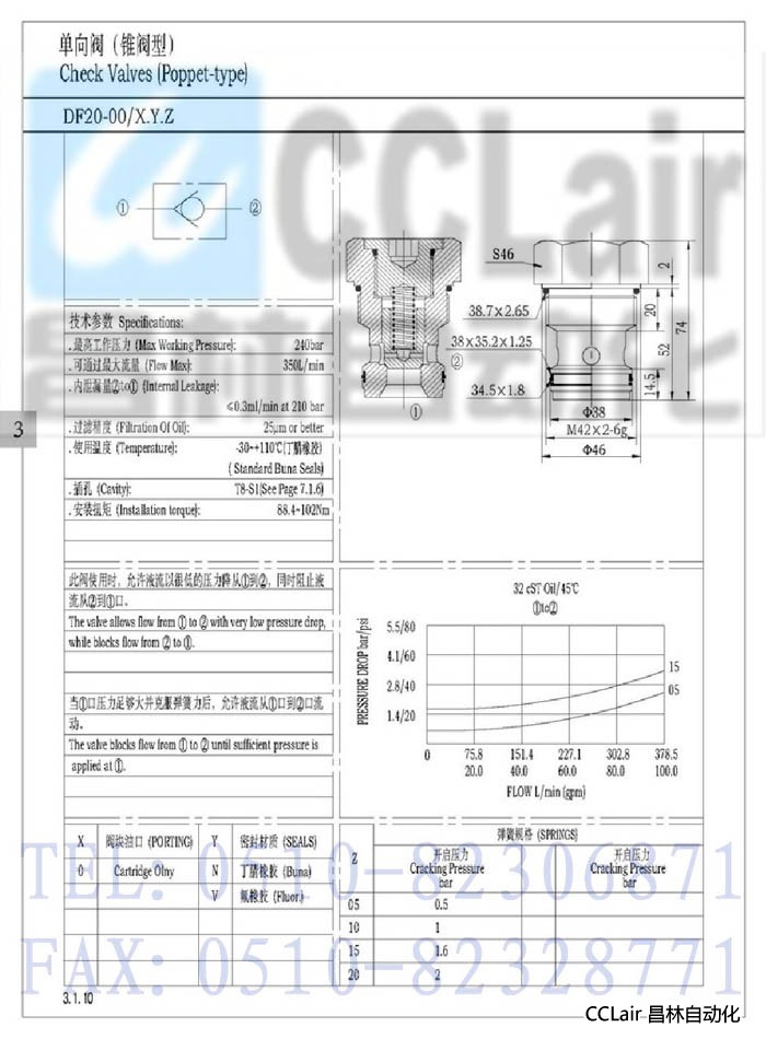 詳細信息 DF20-00,單向閥