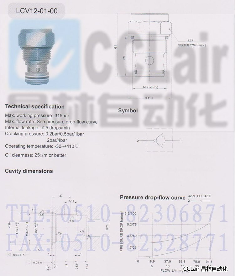 詳細信息 LCV12-01-00,單向閥