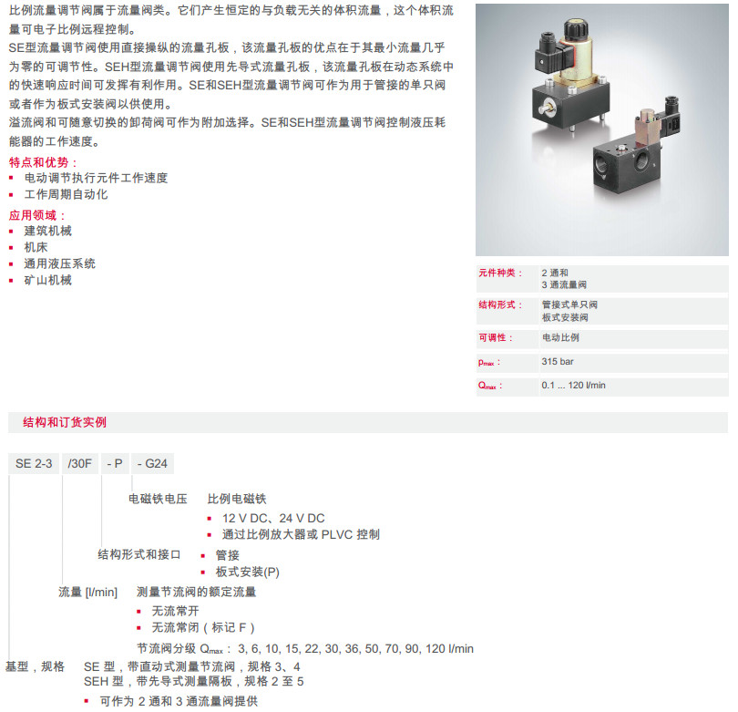 詳細信息 SE2-3/30F-P-G24,SE3-4/30F-P-G12,SEH3-2/30F-P-G24,SEH3-5/30F-P-G12,電動(dòng)比例操縱式流量閥