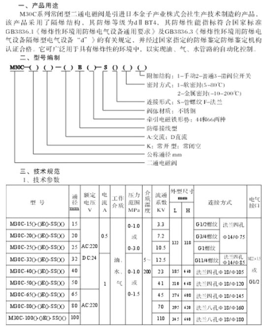 M30C-15,M30C-20,M30C-25,M30C-32,M30C-40,M30C-50,二位二通防爆電磁閥