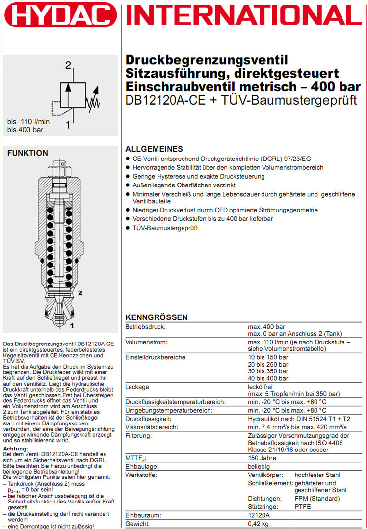 詳細信息 DB12120A-011-CE,HYDAC直動(dòng)減壓閥