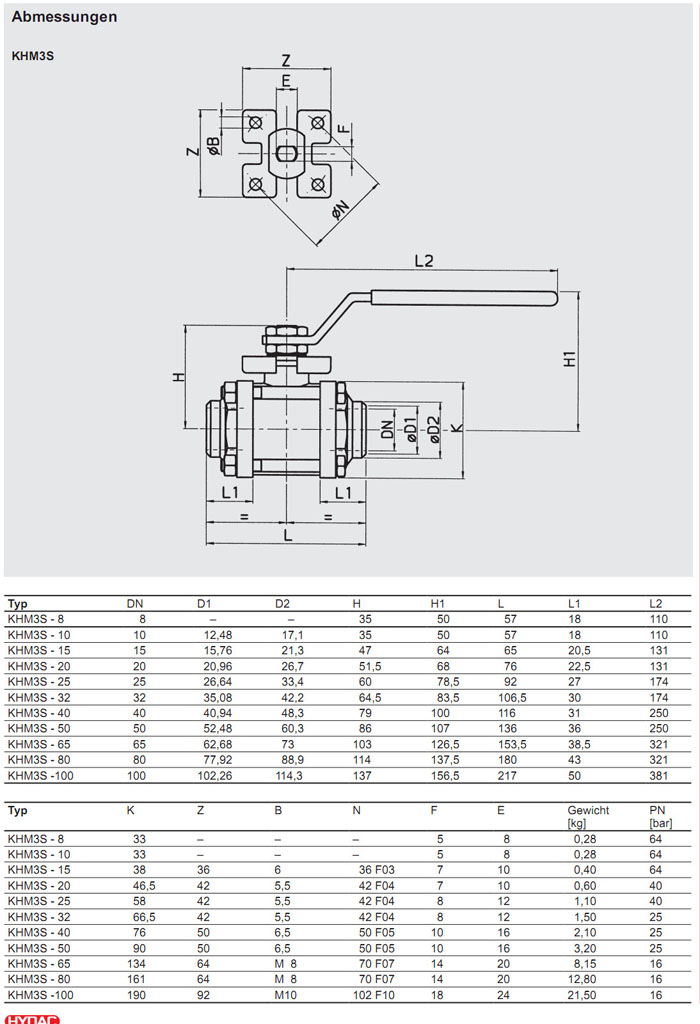 詳細信息 KHM3S-20-1333-16X,HYDAC 2路低壓球閥