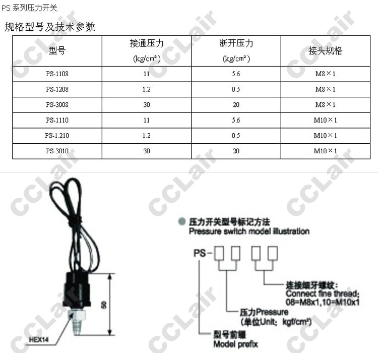 詳細信息 PS-1108,PS-1208,PS-3008,PS-1110,PS-1210,PS-3010,壓力開(kāi)關(guān)