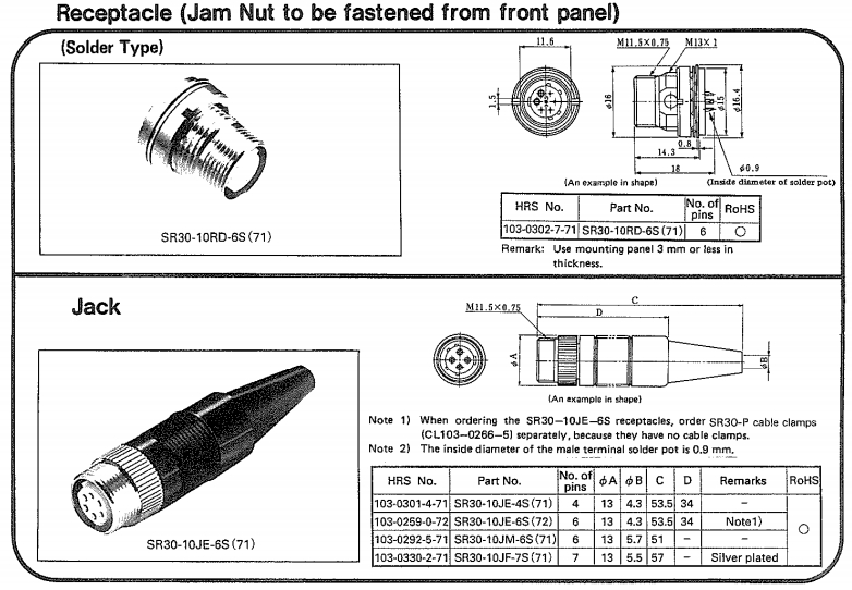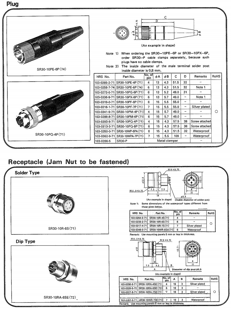 詳細信息 SR30-10PE-4P,SR30-10R-4S,SR30-10JF-7S,SR30-10WR-6SA,hirose連接器