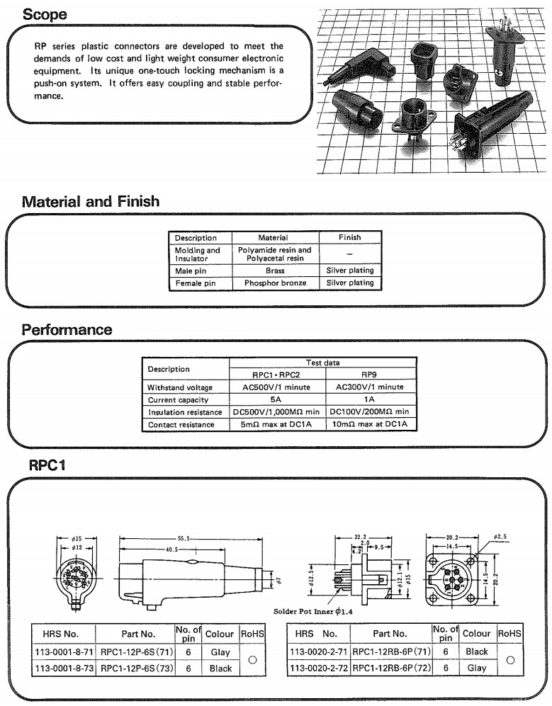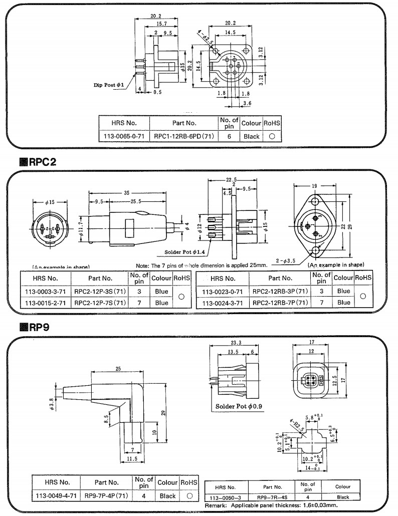 詳細信息 RPC1-12P-6S,RPC1-12RB-6P,RPC2-12P-7S,RPC2-12RB-3P,RP9-7R-4S,hirose連接器