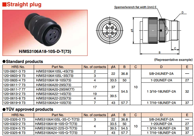 H/MS3106A10SL-3S-C-T,H/MS3106A18-10S-D-T,H/MS3106A22-22S-D-T,H/MS3106A24-10S-G-T,