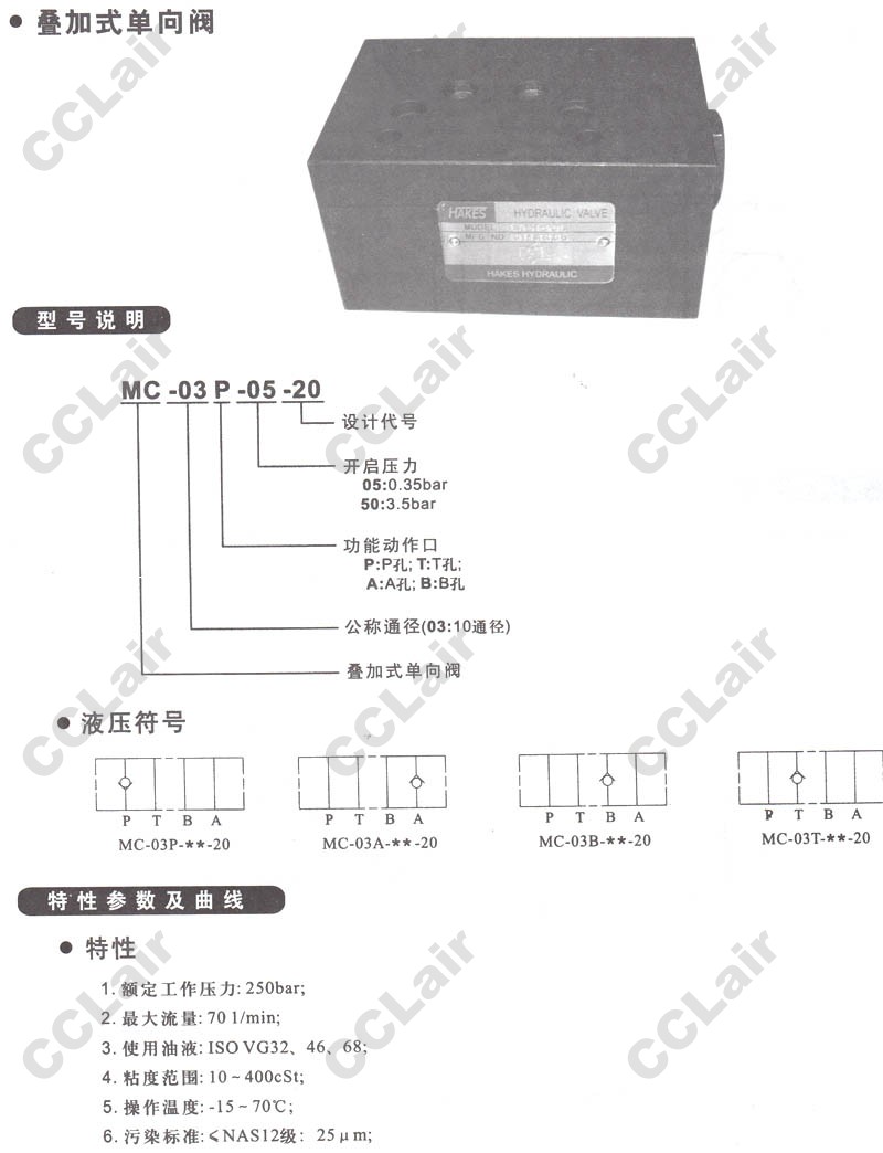 詳細信息 MC-03P-05-20,MC-03A-05-20,MC-03B-05-20,MC-03T-05-20,MC-03P-50-20,MC-03A-50-20,疊加式單向閥