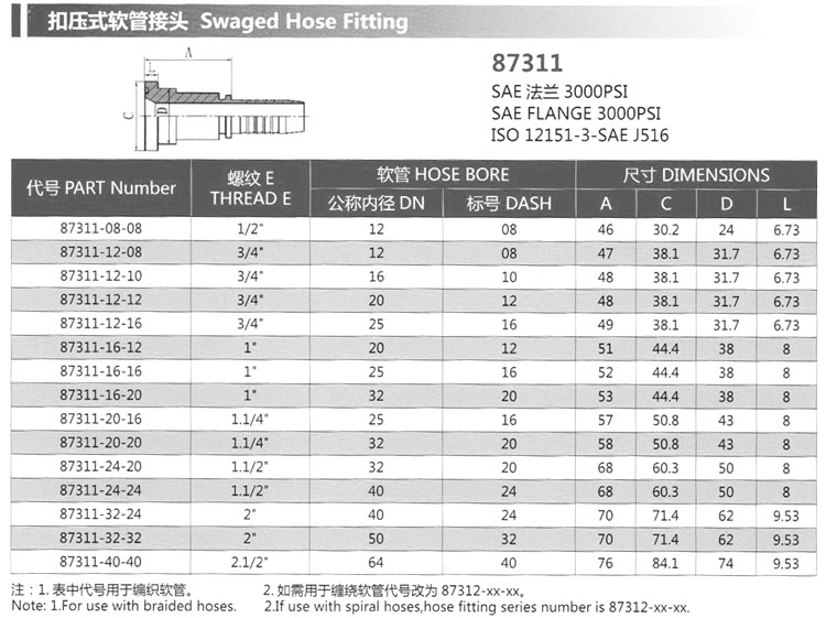 87311-08-08,87311-12-08,87311-20-16,87311-32-24,87311-40-40,扣壓式軟管接頭