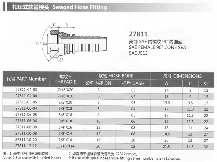 詳細信息 27811-04-03,27811-05-05,27811-06-05,27811-10-08,27811-12-12,扣壓式軟管接頭 27811-04-04,27811-06-04,27811-06-06,27811-08-08,27811-10-10,