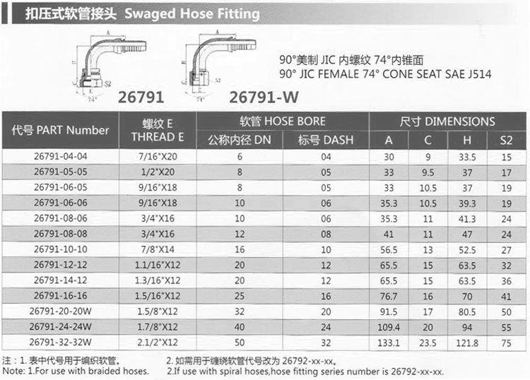26791-04-04,26791-05-05,26791-06-05,26791-08-06,26791-10-10,26791-24-24W,26791-32-32W,扣壓式軟管接頭
