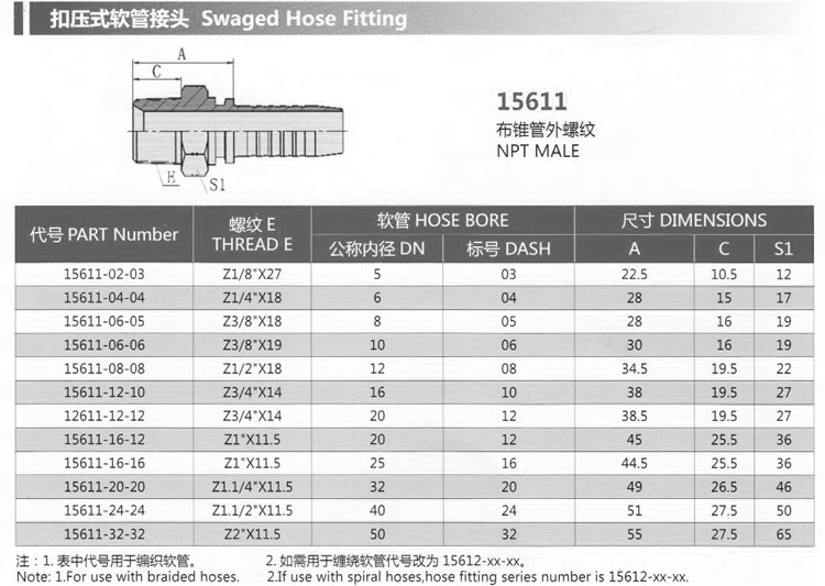 15611-02-03,15611-04-04,15611-06-05,15611-08-08,15611-16-12,15611-24-24,15611-32-32,扣壓式軟管接頭