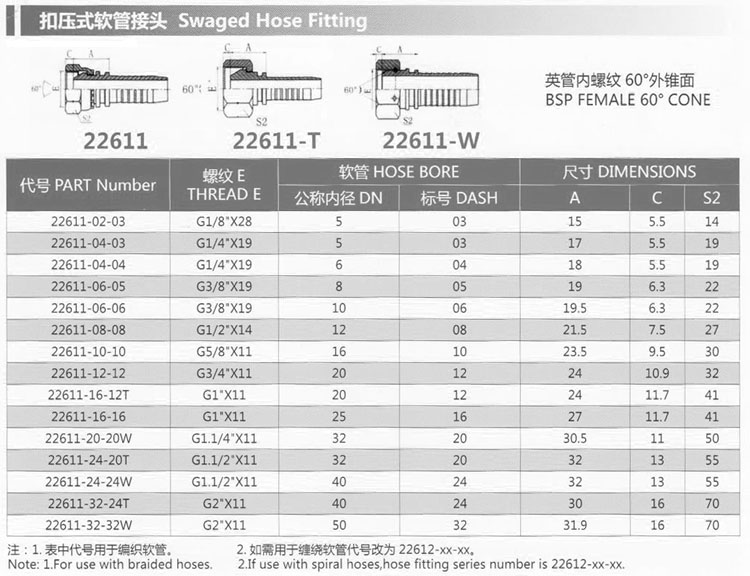 詳細信息 22611-02-03,22611-04-03,22611-06-05,22611-08-08,22611-10-10,22611-20-20W,22611-32-24T,扣壓式軟管接頭 22611-04-04,22611-06-06,22611-12-12,22611-16-12T,22611-16-16,22611-24-20T,22611-24-24W,22611-32-32W,