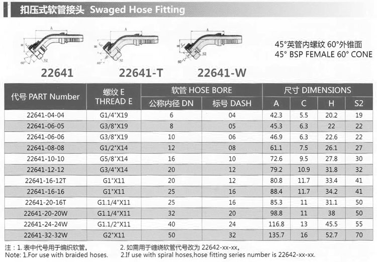 22641-04-04,22641-06-05,22641-08-08,22641-10-10,22641-16-16,22641-24-24W,22641-32-32W,扣壓式軟管接頭