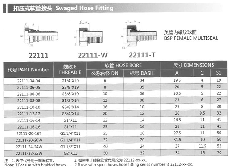 22111-04-04,22111-06-06,22111-08-08,22111-16-16,22111-24-24W,22111-32-32W,扣壓式軟管接頭