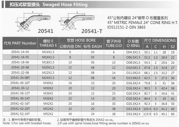 詳細信息 20541-14-04,20541-20-08,20541-30-12,20541-42-16T,20541-52-24T,扣壓式軟管接頭 20541-16-05,20541-18-06,20541-22-08,20541-24-08T,20541-30-10T,20541-36-12T,20541-36-14T,20541-52-20T,