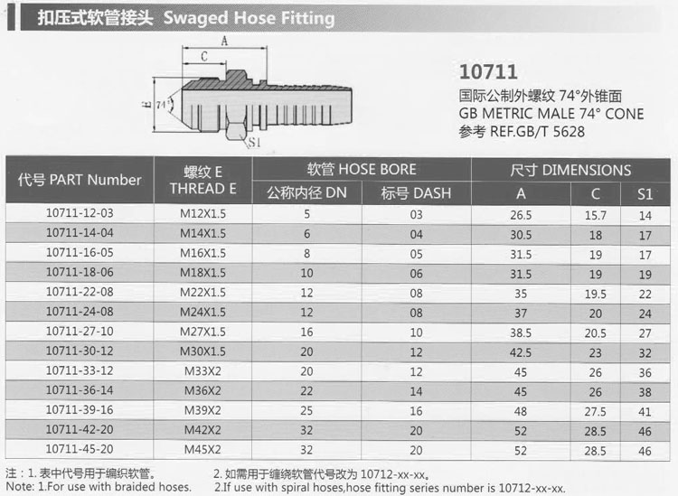 10711-12-03,10711-22-08,10711-30-12,10711-18-06,10711-42-20,10711-45-20,扣壓式軟管接頭