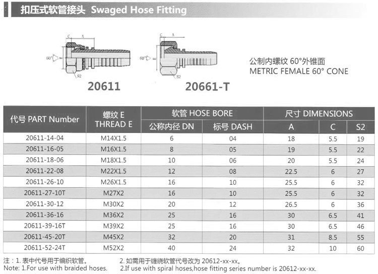 20611-14-04,20611-22-08,20611-30-12,20611-45-20T,20611-52-24T,扣壓式軟管接頭