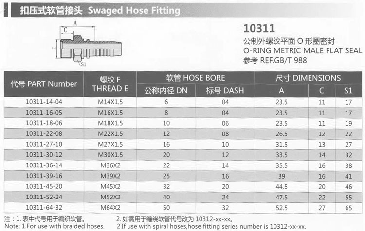詳細信息 10311-14-04,10311-22-08,10311-27-10,10311-30-12,10311-45-20,10311-52-24,10311-64-32,扣壓式軟管接頭 10311-16-05,10311-18-06,10311-36-14,10311-39-16,