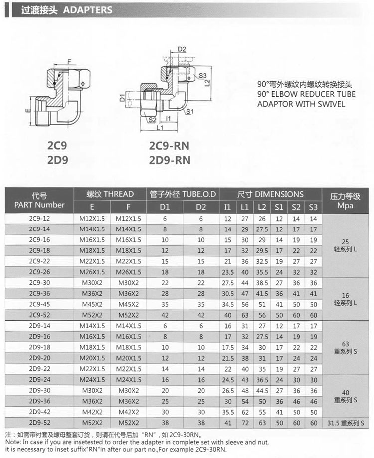 2C9-12,2C9-14,2C9-16,2C9-18,2C9-22,2D9-24,2D9-30,2D9-36,2D9-42,2D9-52,轉換接頭