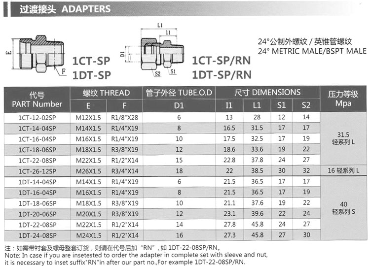 1CT-12-02SP,1CT-14-04SP,1CT-16-04SP,1DT-20-06SP,1DT-22-08SP,1DT-24-08SP,過(guò)渡接頭