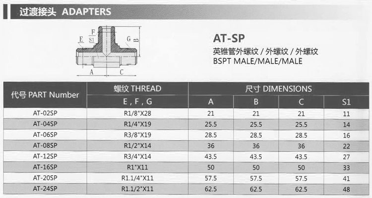 詳細信息 AT-02SP,AT-04SP,AT-06SP,AT-08SP,AT-12SP,AT-16SP,AT-20SP,AT-24SP,過(guò)渡接頭