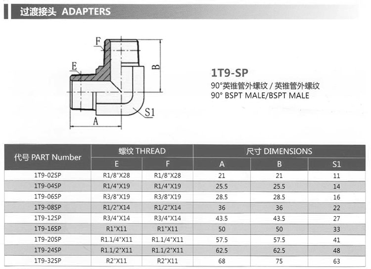 1T9-02SP,1T9-04SP,1T9-06SP,1T9-08SP,1T9-12SP,1T9-16SP,1T9-20SP,1T9-24SP,1T9-32SP,過(guò)渡接頭