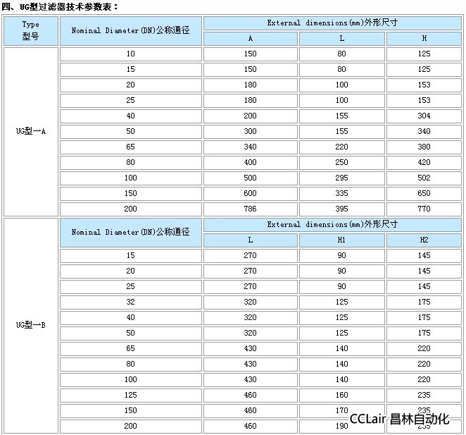 詳細信息 UG型-A,UG型-B,過(guò)濾器