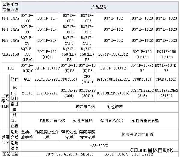 BQ71F對夾式保溫球閥主要型號: