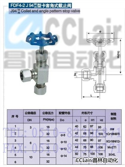 詳細信息 J94W-16,J94W-25,J94W-64,J94W-160,卡套角式針型閥
