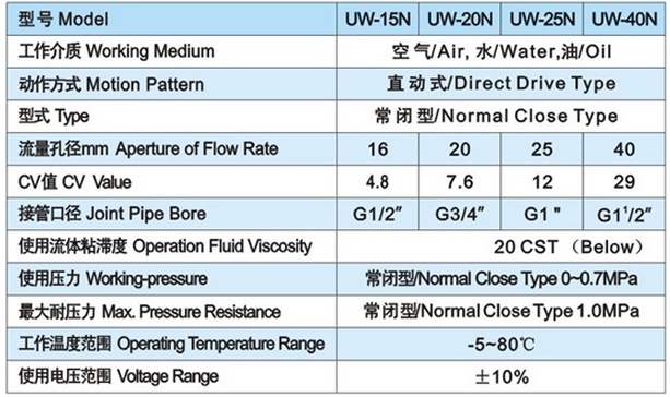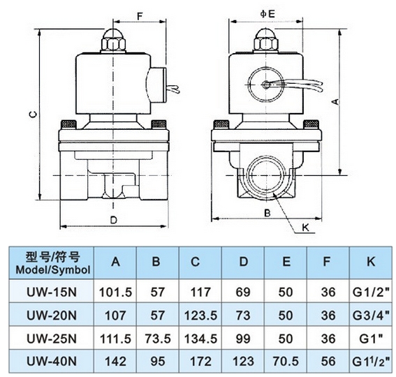 詳細信息 UW-15N,UW-20N,UW-25N,UW-40N,潛水電磁閥