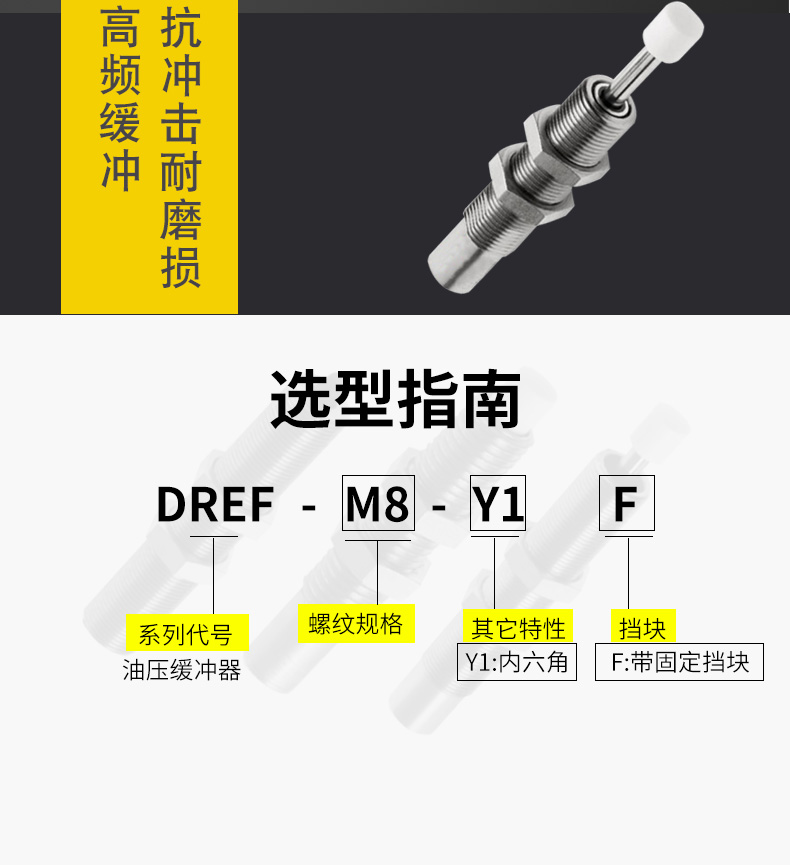 詳細信息 DYSW4-6Y1F,DYSW5-8Y1F,DYSW7-10Y1F,DYSW8-14Y1F,DYSW10-17Y1F,DYSW12-20Y1F, 油壓緩沖器DYSW DYEF-M4-Y1F,DYEF-M5-Y1F,DYEF-M8-Y1F,DYEF-M10-Y1F,DYEF-M12-Y1F,DYEF-M14-Y1F,DYEF-M16-Y1F,