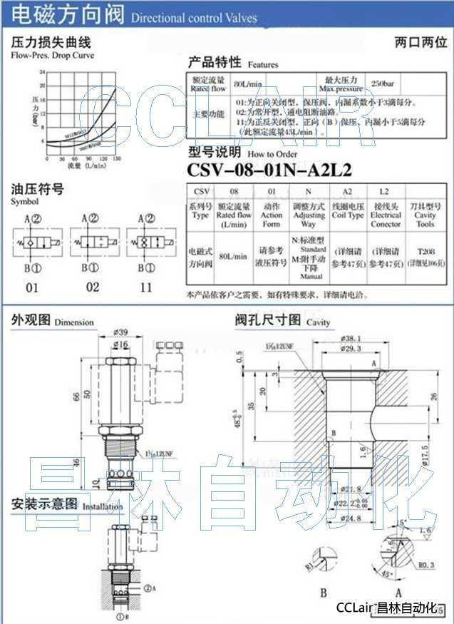 詳細信息 CSV-08-01N-A2L2,CSV-08-01M-A2L2,電磁方向閥