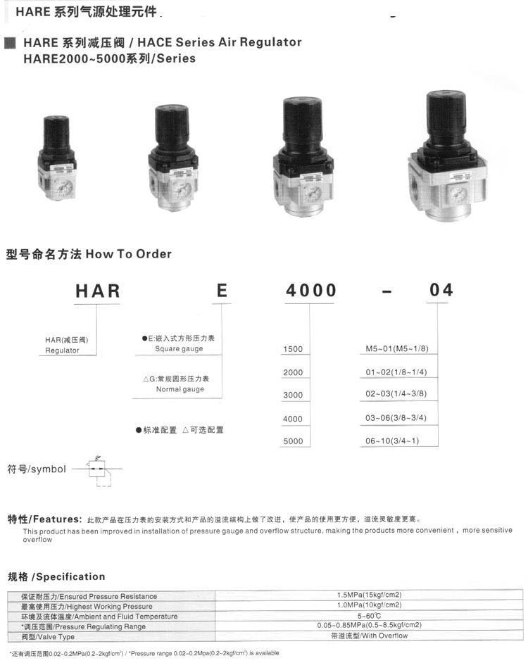 詳細信息 HARE1500-M5,HARE2000-01,HARE3000-02,HARE4000-03,HARE5000-06,HARE1500-1/8,減壓閥