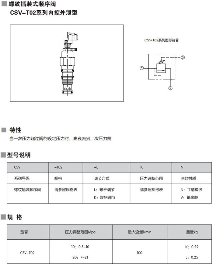 CSV-T02-L10N,CSV-T02-L10V,CSV-T02-K10N,CSV-T02-K10V,CSV-T02-L20N,CSV-T02-L20V,螺紋插裝式順序閥 詳細信息 CSV-T02-L10N,CSV-T02-L10V,CSV-T02-K10N,CSV-T02-K10V,CSV-T02-L20N,CSV-T02-L20V,螺紋插裝式順序閥
