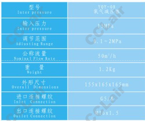 詳細信息 YQY-08,氧氣減壓器,CCLair