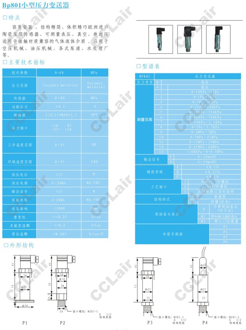 Bp801,壓力變送器,CCLair