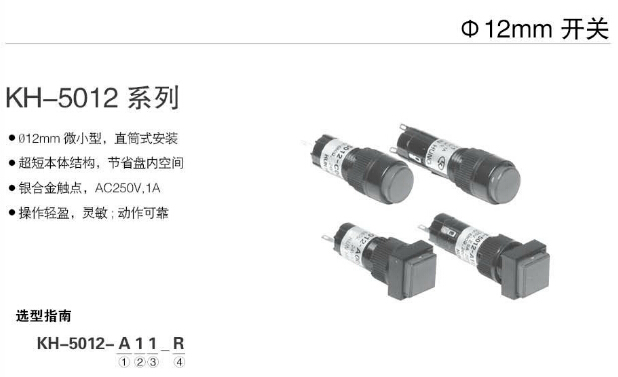 您當前的位置:首頁(yè) » 產(chǎn)品&解決方案 » KH-5012-C00,KH-5012-C11,KH-5012-C21,KH-5012-A00,KH-5012-A11,KH-5012-A21,Koino Φ12mm開(kāi)關(guān)